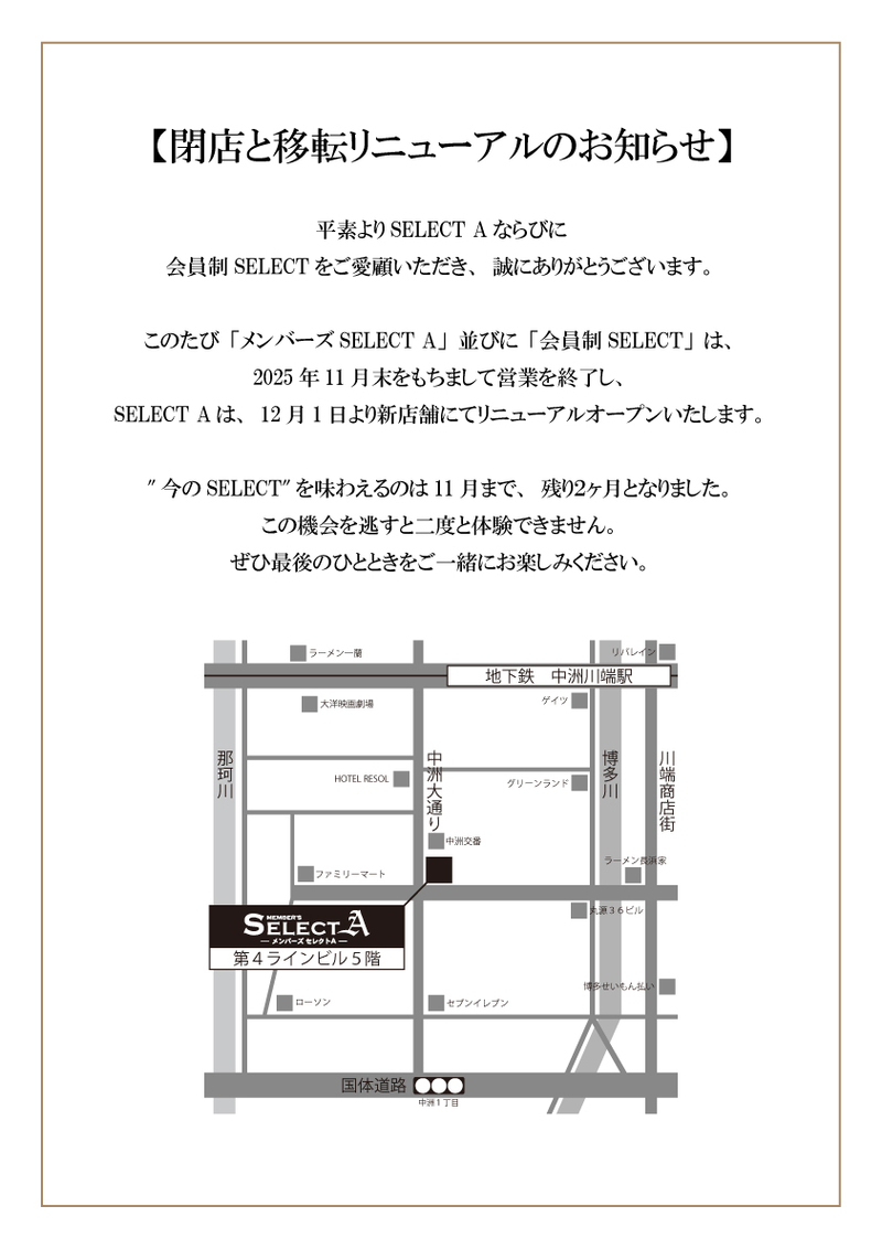 この度、会員制SELECTは移転をすることとなりました。